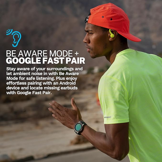 - Be Aware Mode + Google Fast Pair: Stay aware of your surroundings and let ambient noise in with Be Aware Mode for safe listening. Plus enjoy effortless pairing with an Android device and locate missing earbuds with Google Fast Pair