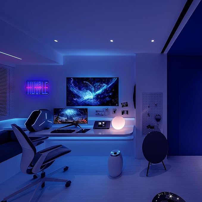 - 【 USB powered 】LED Neon Light comes with a controller switch. Simply connect to a USB adapter and adjust the light intensity through the controller (up and down buttons to adjust the brightness by 10% -100%). You can hang it anywhere as needed (equipped with metal chains), or lay it flat on the desktop for easy operation. When it is turned on again, the smart neon light will remain in its original light state without the need to readjust its strength.