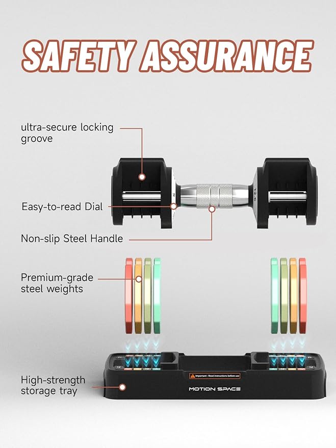 - đ„ăSAFETY DESIGNăWith its innovative count weight plate design, it easily adjusts the weight by holding the handle and turning the pointer to the desired number. Our latest design includes 8 locking mechanisms, providing stability and ensuring safety during workouts.