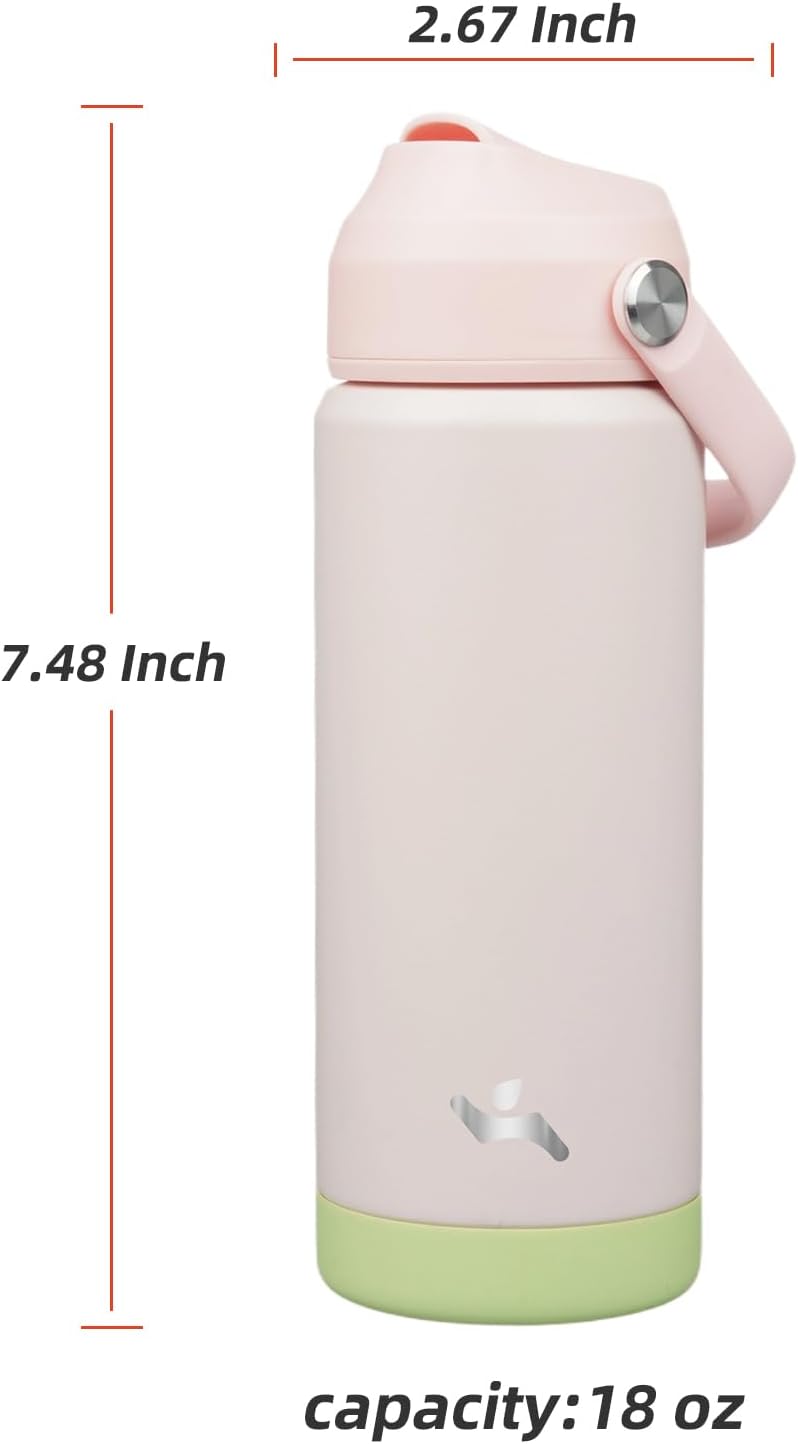 Insulated Water Bottle with Straw Lid,18 oz Stainless Steel Vacuum Metal Bottle with Silicone Handle,Pearl