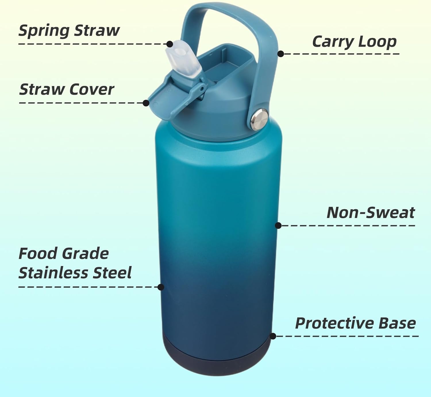 - Leak-proof and dust-proof straw design ensures beverages stay securely contained.You can close the spout after taking a sip.Non-sweat bottle exterior prevents condensation, keeping your hands dry