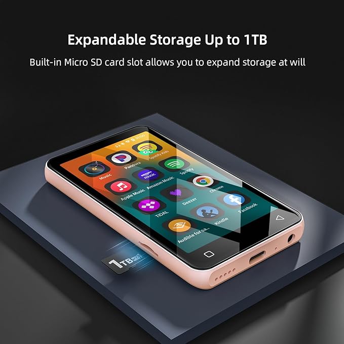 - Large Memory Android MP3: The Bluetooth mp3 player adopts the Android OS and 8 core CPU 1.9GHz processor to make it run faster and more smoothly. Meanwhile, the player built in 2GB RAM and 80GB storage(16GB ROM+ 64GB TF card), supports to expand external storage up to 1TB and is compatible with SDXC, SDHC. You can load a lot of music, videos and pictures without using up your phone's memory