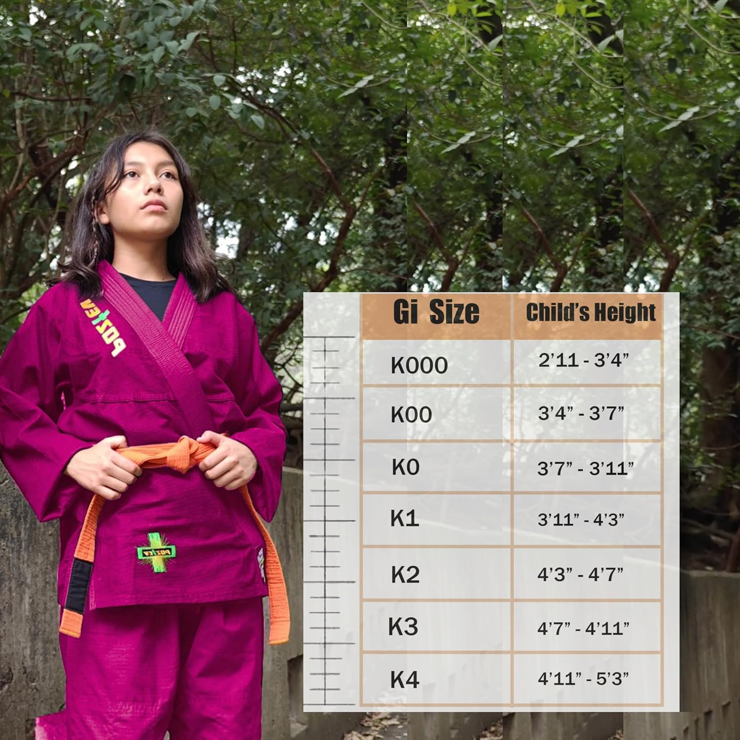 - π Size Guide for the Perfect Fit β POZTEV Kids Jiu Jitsu Gi is available in multiple sizes to suit growing athletes: K000 for 2β11β- 3β4β, K00 for 3β4β - 3β7β, K0 for 3β7β - 3β11β, K1 for 3β11β - 4β3β, K2 for 4β3β - 4β7β, K3 for 4β7β - 4β11β, and K4 for 4β11β - 5'3'' . Choose a size down if your child is slim or size up if overweight for the best fit.