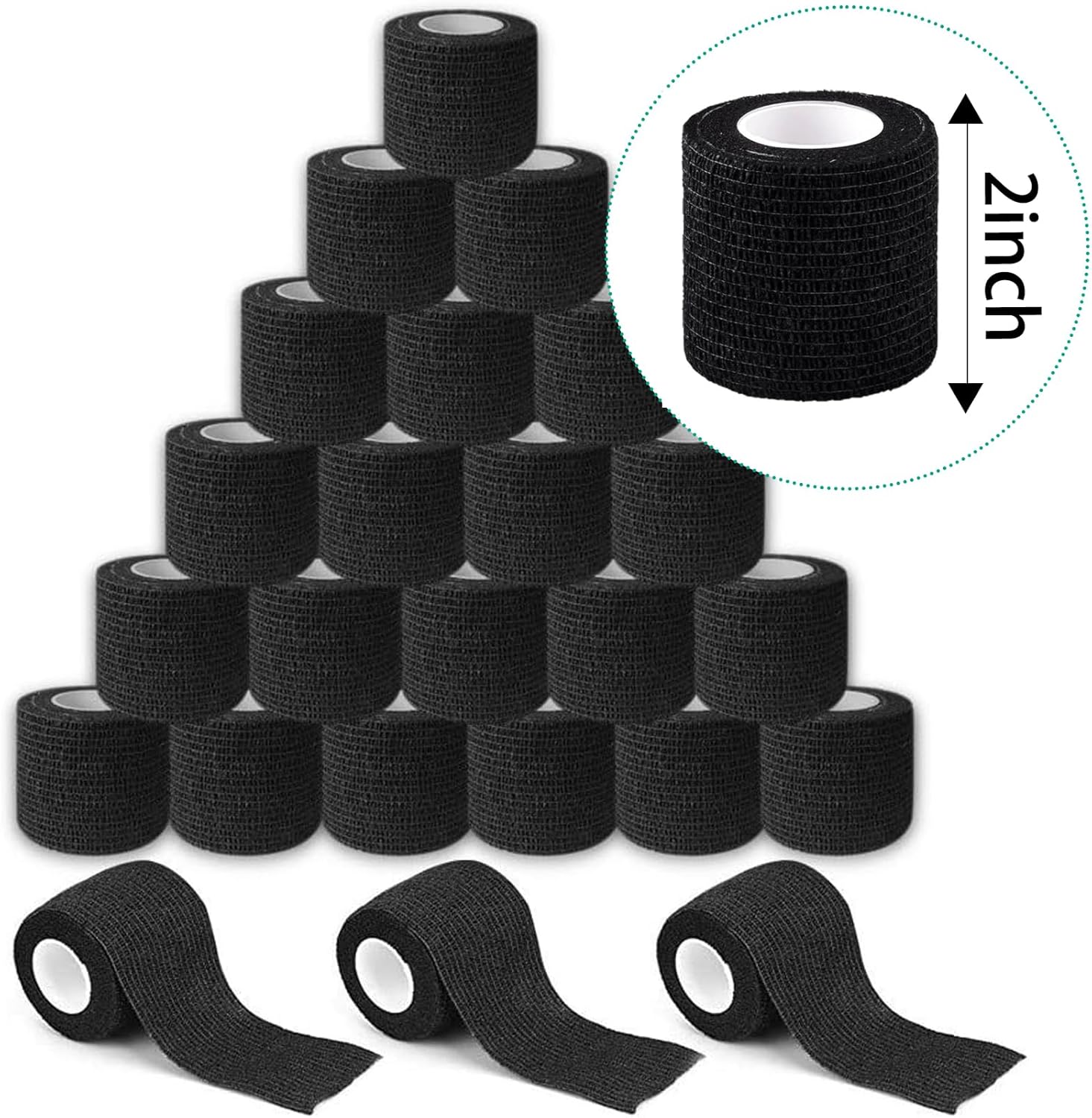 32 Rolls Self Adhesive Bandage Wrap 2 inch Cohesive Bandage Wrap Stretch Bandages Wraps Tape Black Elastic Self-Adherent Tape for Wrist Ankle Sports Swelling Sprains