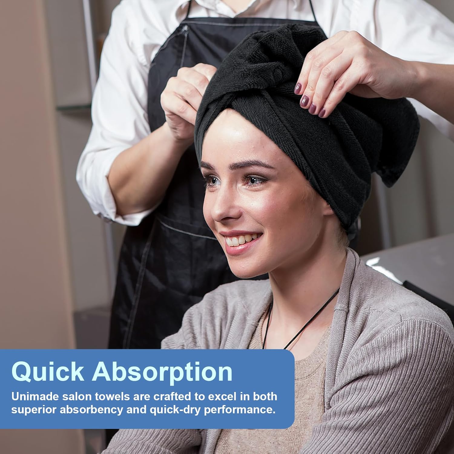 - Comprehensive 24-Pack: This towel set includes 24 black salon towels, each measuring 16x27 inches, offering a high-value solution for commercial and personal use. Made from microfiber, these towels efficiently dry wet hair and skin with minimal effort, saving valuable time during salon or grooming services