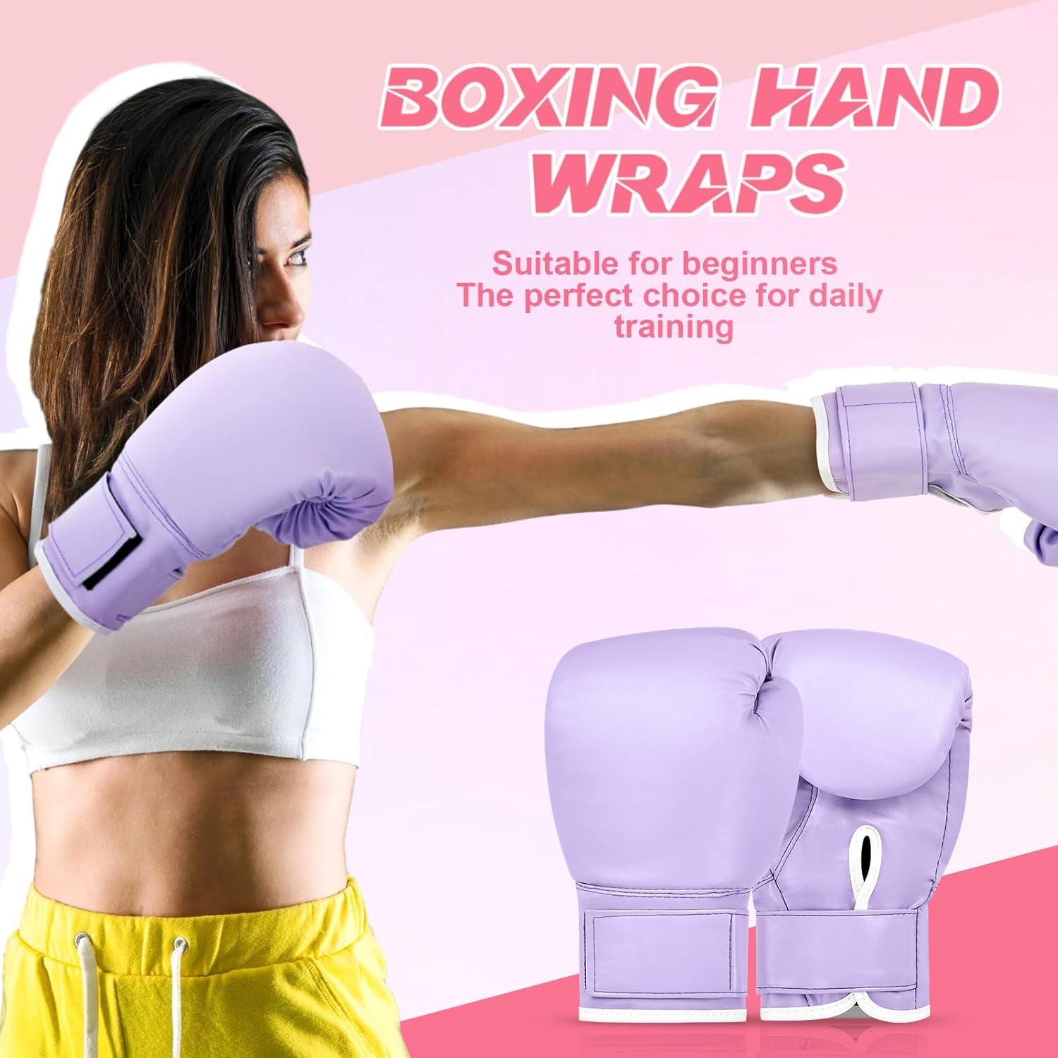 - Nice Combination for Beginners: the package will provide you with 2 sets of boxing gear respectively in purple and pink color, each set contains 1 piece of helmet, 1 pair of boxing gloves, 2 rolls of boxing hand wraps and 2 pieces of boxing mouth guards, offering you safety during training