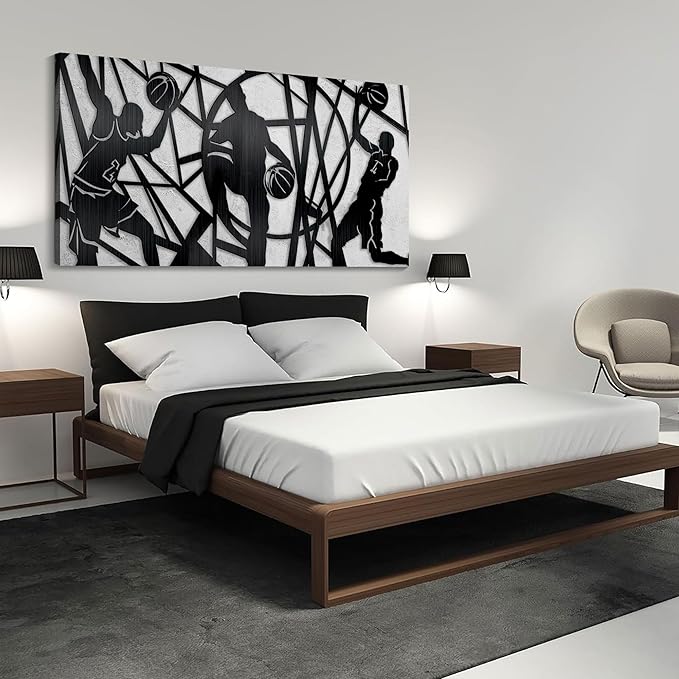 - Wall Art for Men: Background of this basketball player sports wall decor adopts staggered black lines,which visually form a dynamic rhythm, you can feel the fast and intense rhythm on the basketball court, also makes the whole picture more layered
