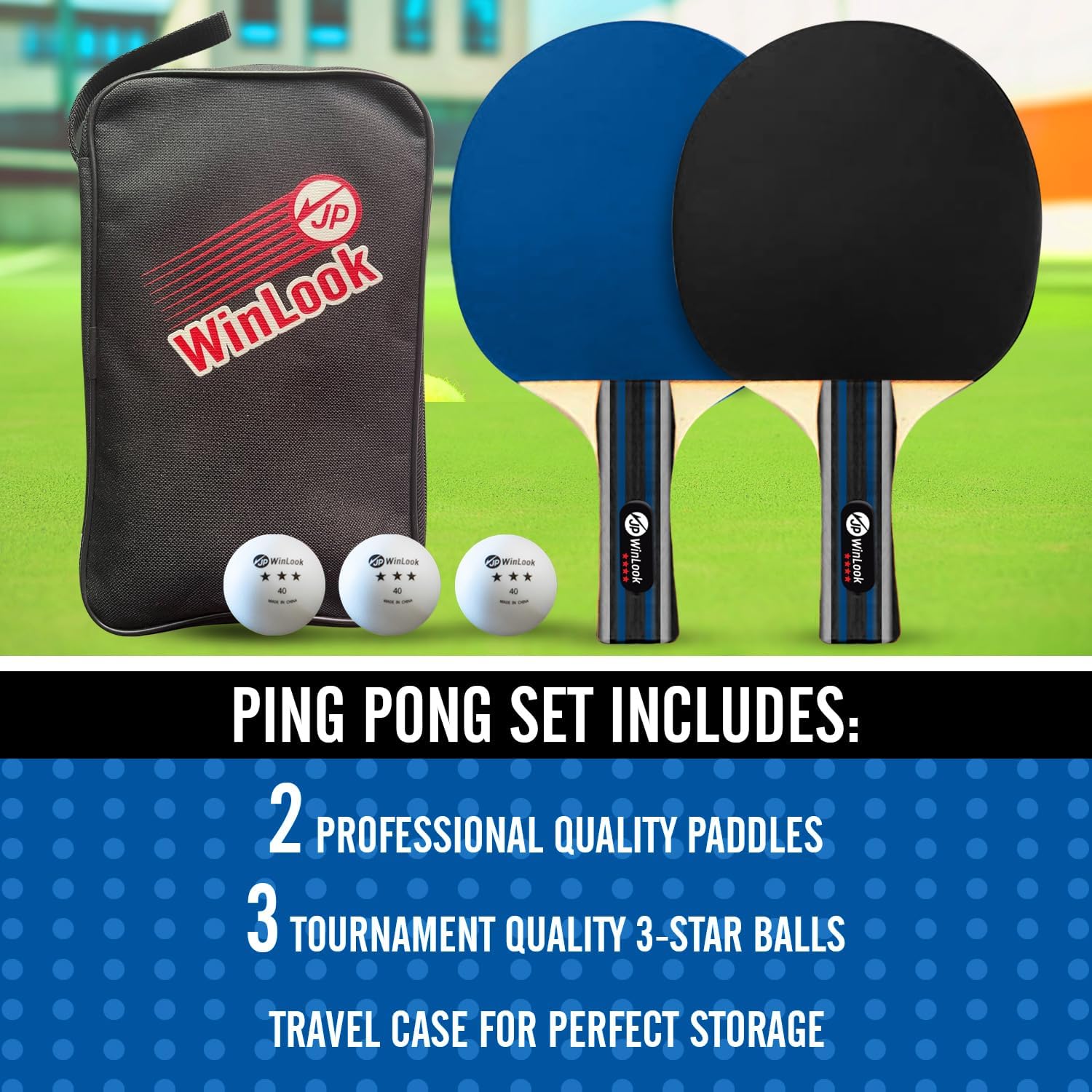 - JP WINLOOK FOR OUTDOOR & INDOOR PLAY: The 2 ping pong table tennis set and 3 balls offer a fun afternoon game or competitive matches against family and friends. It's the perfect set for you to bring outside so you can play poolside, on picnic tables or to bring indoors to continue the fun