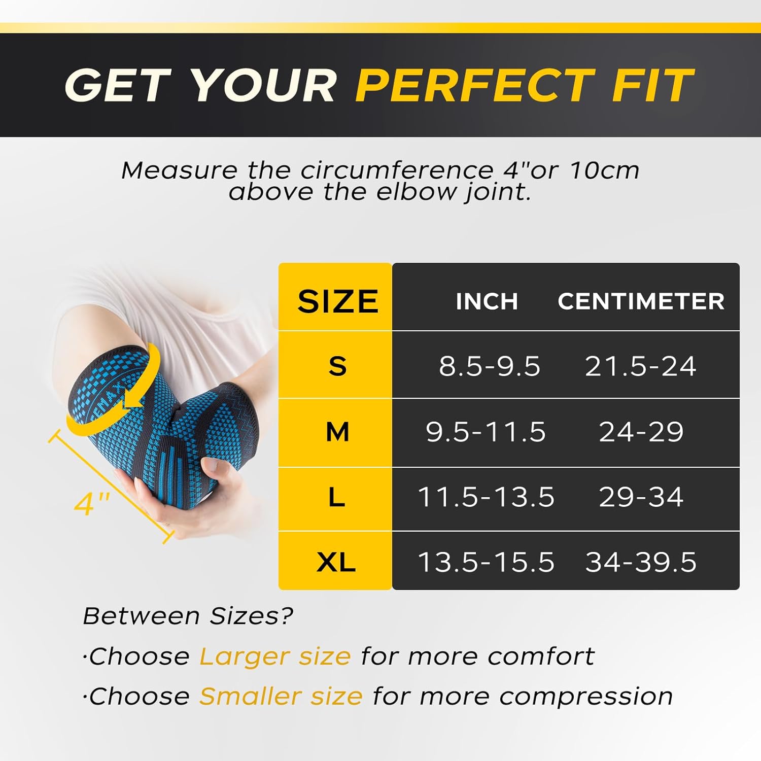 - Instant Elbow Pain Relief: This tendonitis elbow brace provide enough compression significantly improve blood circulation in the elbow without jiont restriction. Performs well in relieve elbow symptoms of arthritis, tendonitis, cubital tunnel syndrome, tennis elbow, golf elbow, bursitis, and other kinds of elbow pain.