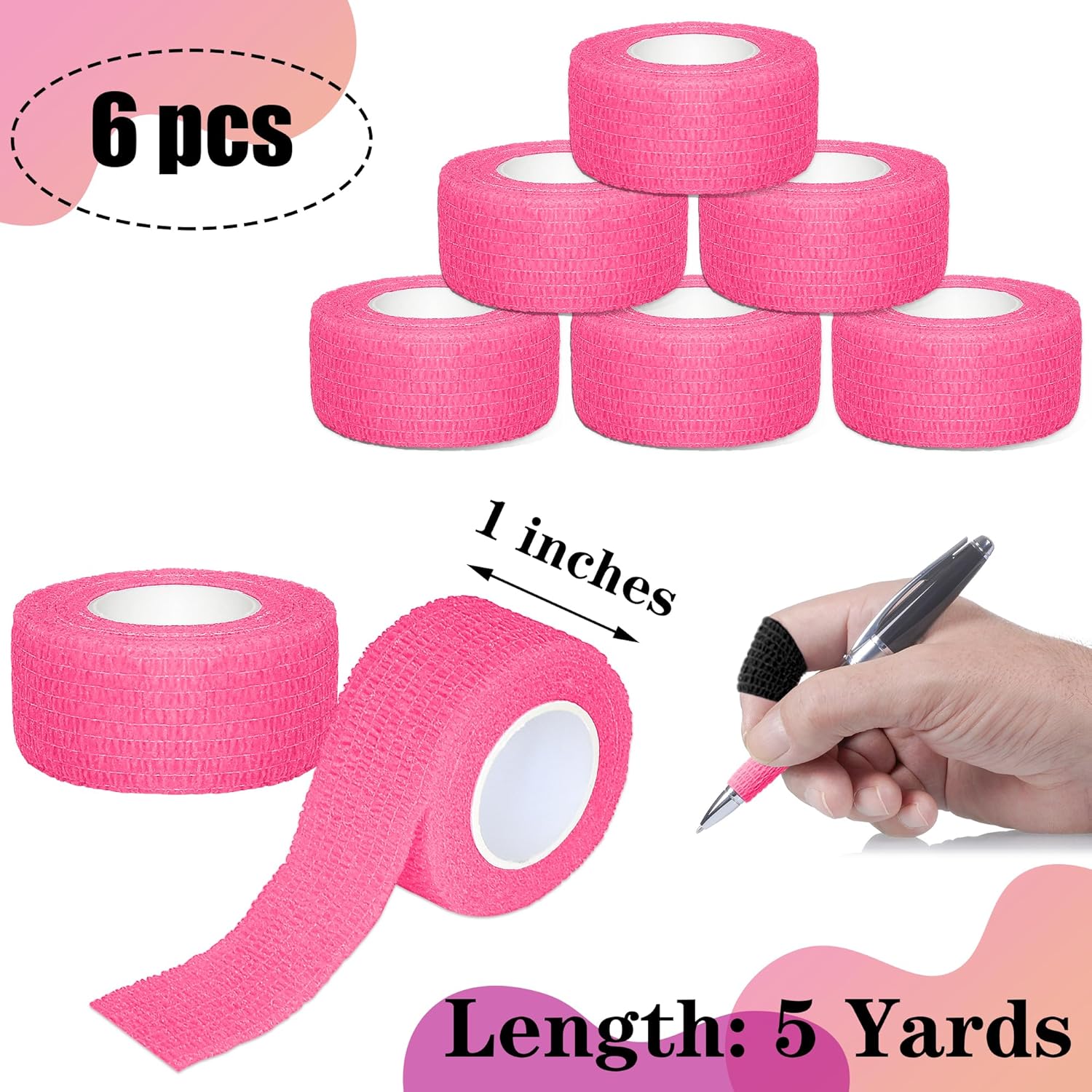 6 Pack 1 Inches Self Adhesive Bandage Wrap Breathable Cohesive Bandage Elastic Tape for Pets, Athletic, Sports, Wrist, Knee, Ankle(5 Yards Per Roll, Pink)