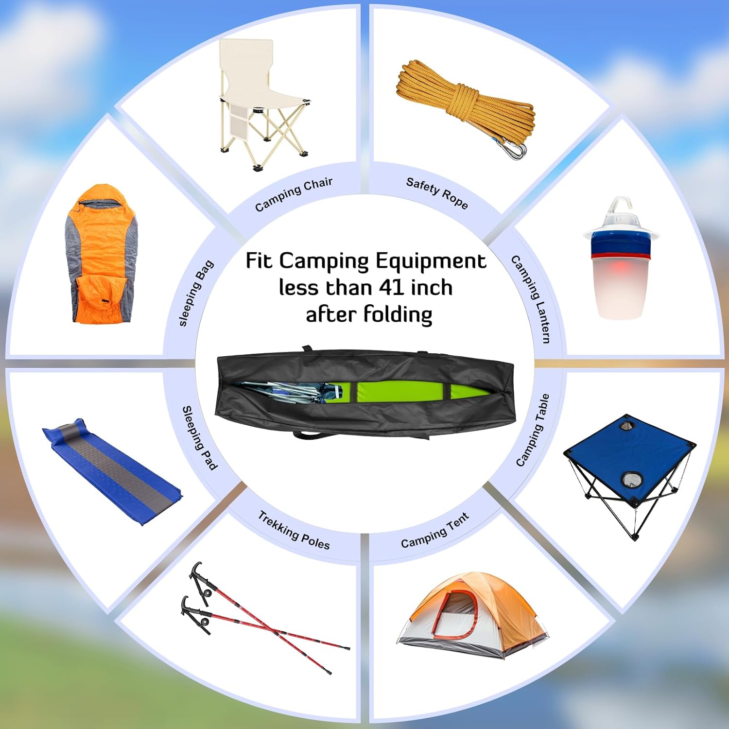INFANZIA 41 inch Duffel Travel Sports Equipment Bag, Long Luggage Bag with Upgrade Zipper Water Resistant, Extra Large Foldable Storage Bag for Camping, Tent, Tripod, Fishing