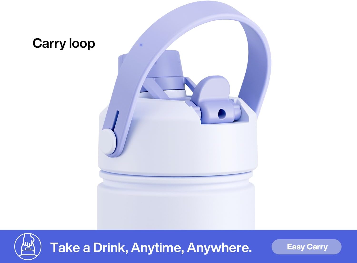 26 oz Insulated Water Bottle with 2-in-1 Straw and Spout Lid, Keep Cold 24H, Leak-Proof, Fits in Car Cup Holder, Stainless Steel Water Bottle for Sports, Travel, and School (Lupine)