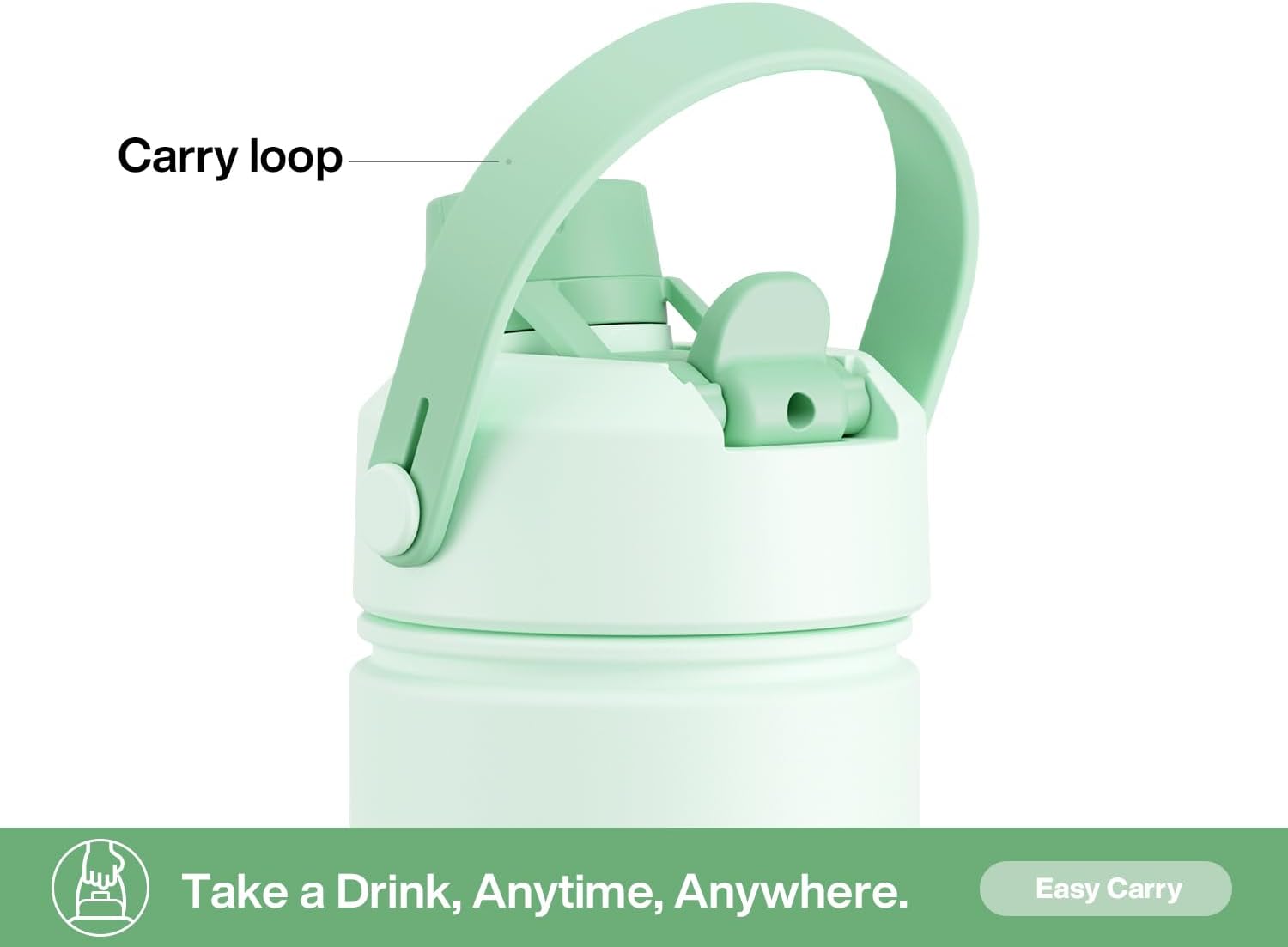 26 oz Insulated Water Bottle with 2-in-1 Straw and Spout Lid, Keep Cold 24H, Leak-Proof, Fits in Car Cup Holder, Stainless Steel Water Bottle for Sports, Travel, and School (Mint)