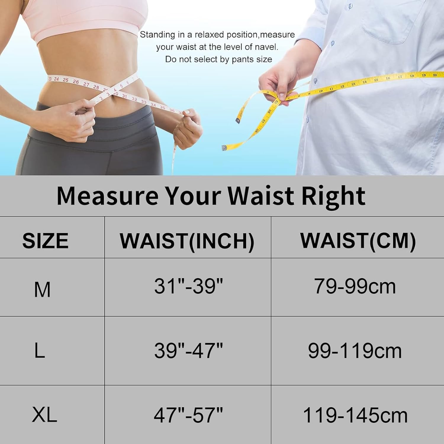 - SUITABLE WIDE CROWD: Unisex design belt, suitable for both men and women. Three sizes are available: M (31 in/79 cm-39 in/99 cm), L (39 in/99 cm-47 in/119 cm), XL (47 in/119 cm-57 in/145 cm).