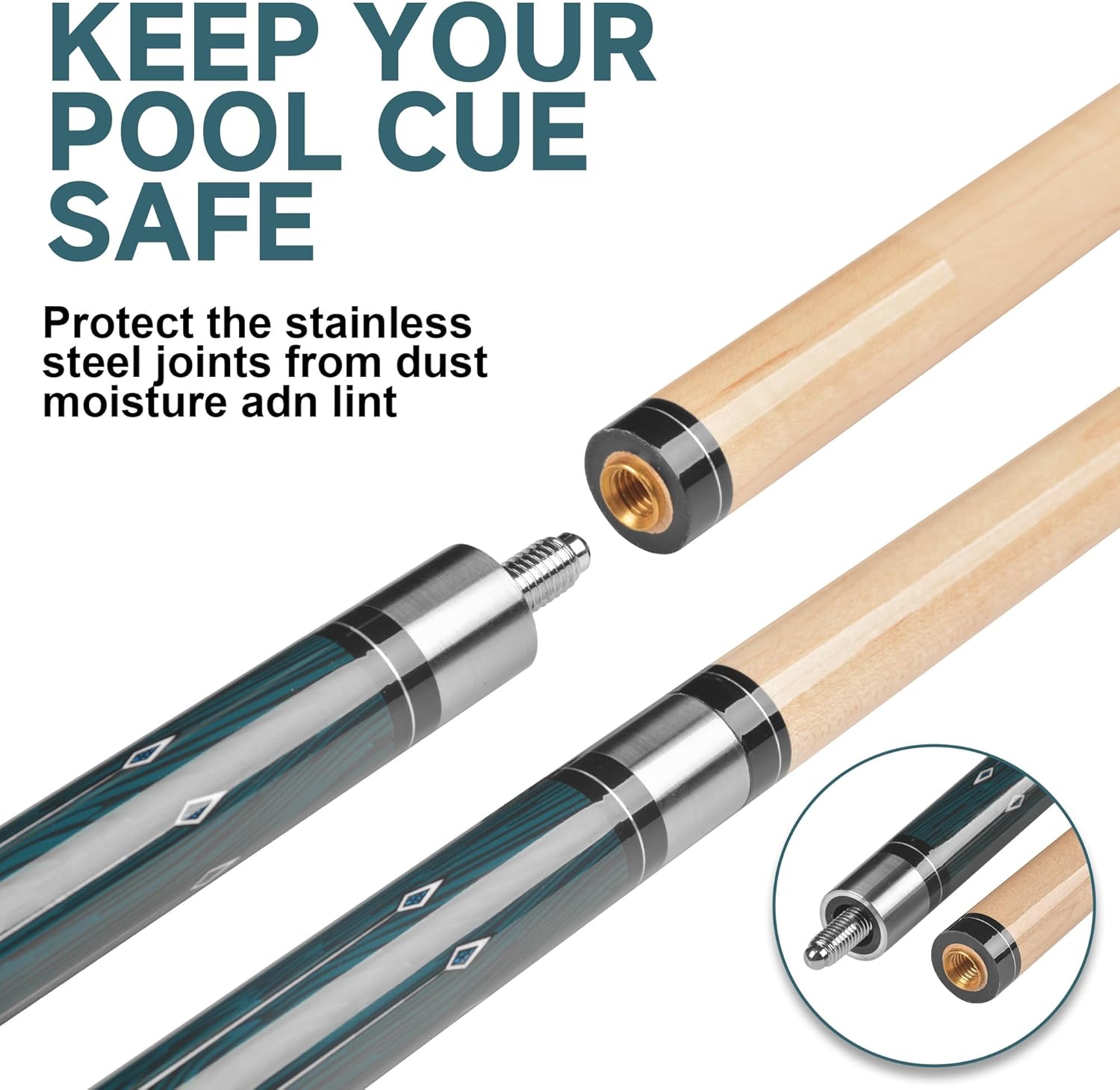 • 【Premium Material】: Pool cue are made of maple wood, finished with matte paint. Features a two-piece pool cue stick design for easy transport and storage.