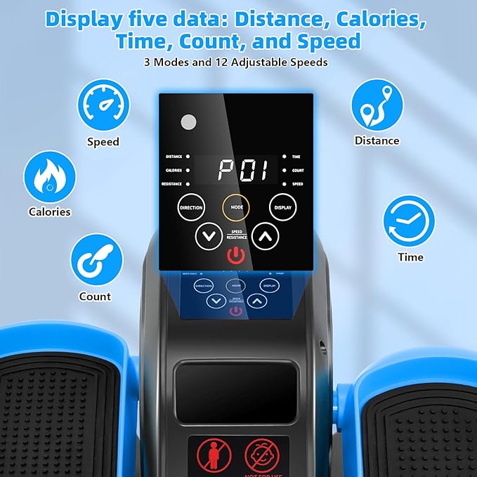 - 【Remote Control and LCD Display】The seated foot pedal exerciser comes with a remote control, allowing you to adjust settings without bending over, protecting your waist and back. The LCD screen displays real-time data on distance, time, calories burned, steps, speed, and resistance.