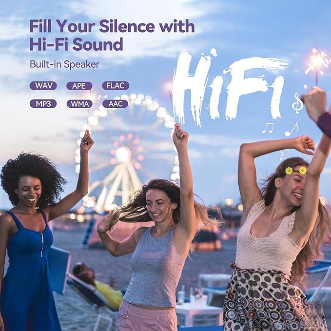 - 【HiFi Lossless Sound & Sports Partner】 With a professional audio decoding chip and smart noise reduction chip, AGPTEK MP3 player brings you original lossless music. With breakpoint resume function, perfect for doing sports, Yoga, exercise, running, travel, etc. Supports music formats like MP3/APE/FLAC/WMA/WAV/AAC [Note It does not directly support Audible, Apple music and iTunes.]