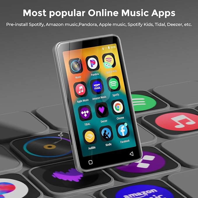 • Online music listening: The MP3 player comes pre-installed with popular apps like Spotify, Spotify kids, Amazon Music, and Deezer, offering easy access to a vast music library. Whether you need to free up phone memory, want a dedicated player, or have kids not ready for a phone, it's a great choice. Note: MP3 cannot be installed with any other apps except the included ones.