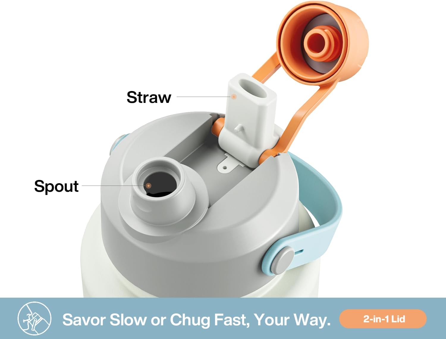- Versatile 2-in-1 Lid: Features a straw for easy sipping and a spout for effortless pouring or chugging; simplifying beverage access whether it's a hot coffee or a cold drink
