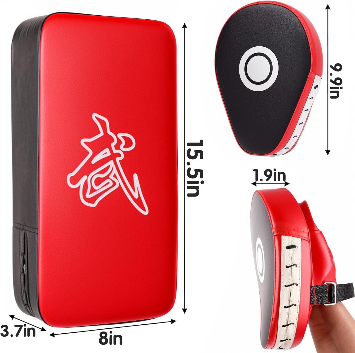- Complete Boxing Training Equipment Set: Includes 1 pair of curved punching mitts and 1 kick pad for martial arts. Each boxing pad is crafted for durability and impact absorption—ideal for boxing training, MMA, taekwondo, muay thai, karate, and other martial arts training equipment needs