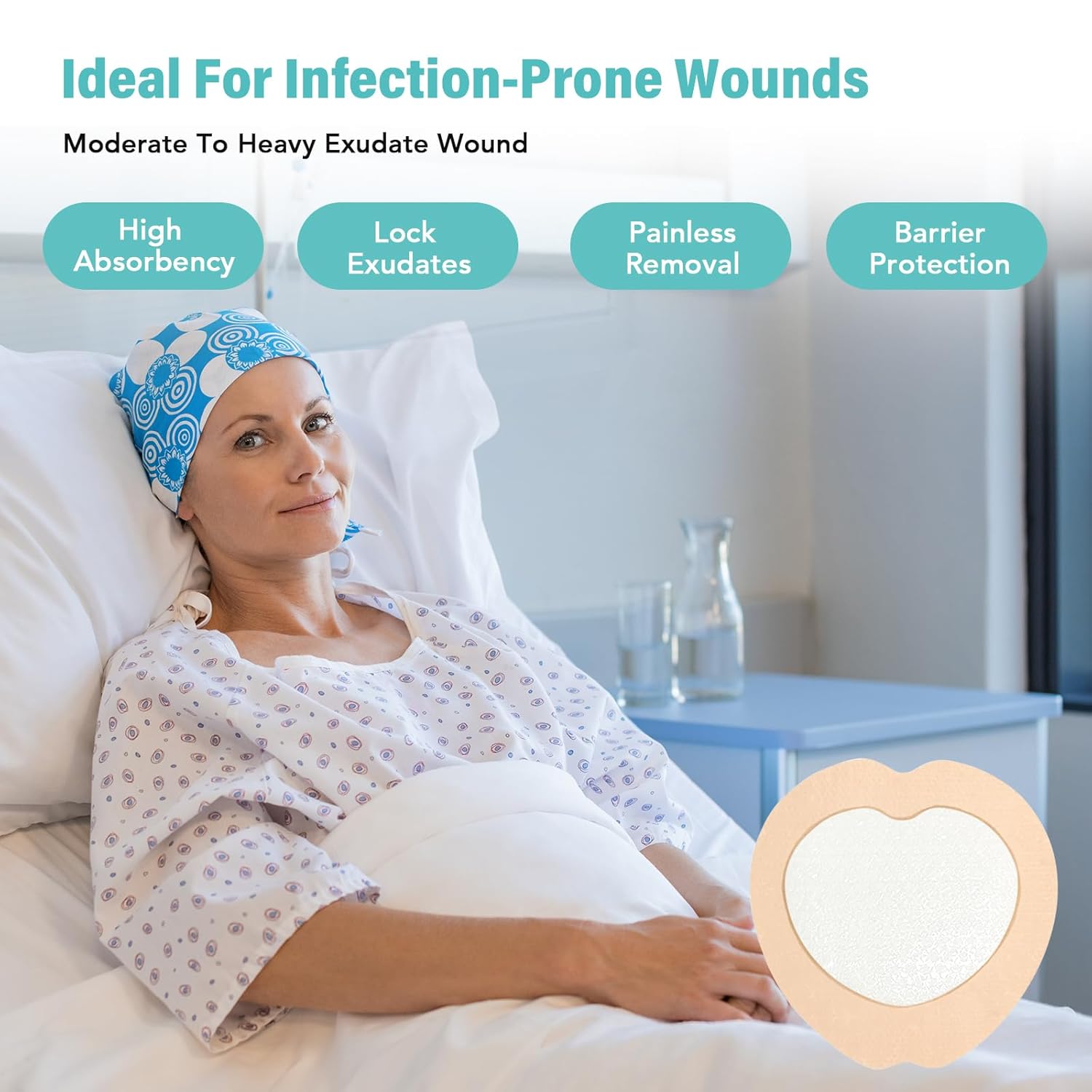- Secure Fit:: The expanded adhesive border of silicone wound dressings ensures prolonged adhesion.An internal unique cutting design enhances conformability and flexibility by 5X, ensuring the bandage adheres more securely to joint areas, offering enhanced protection for the wound.