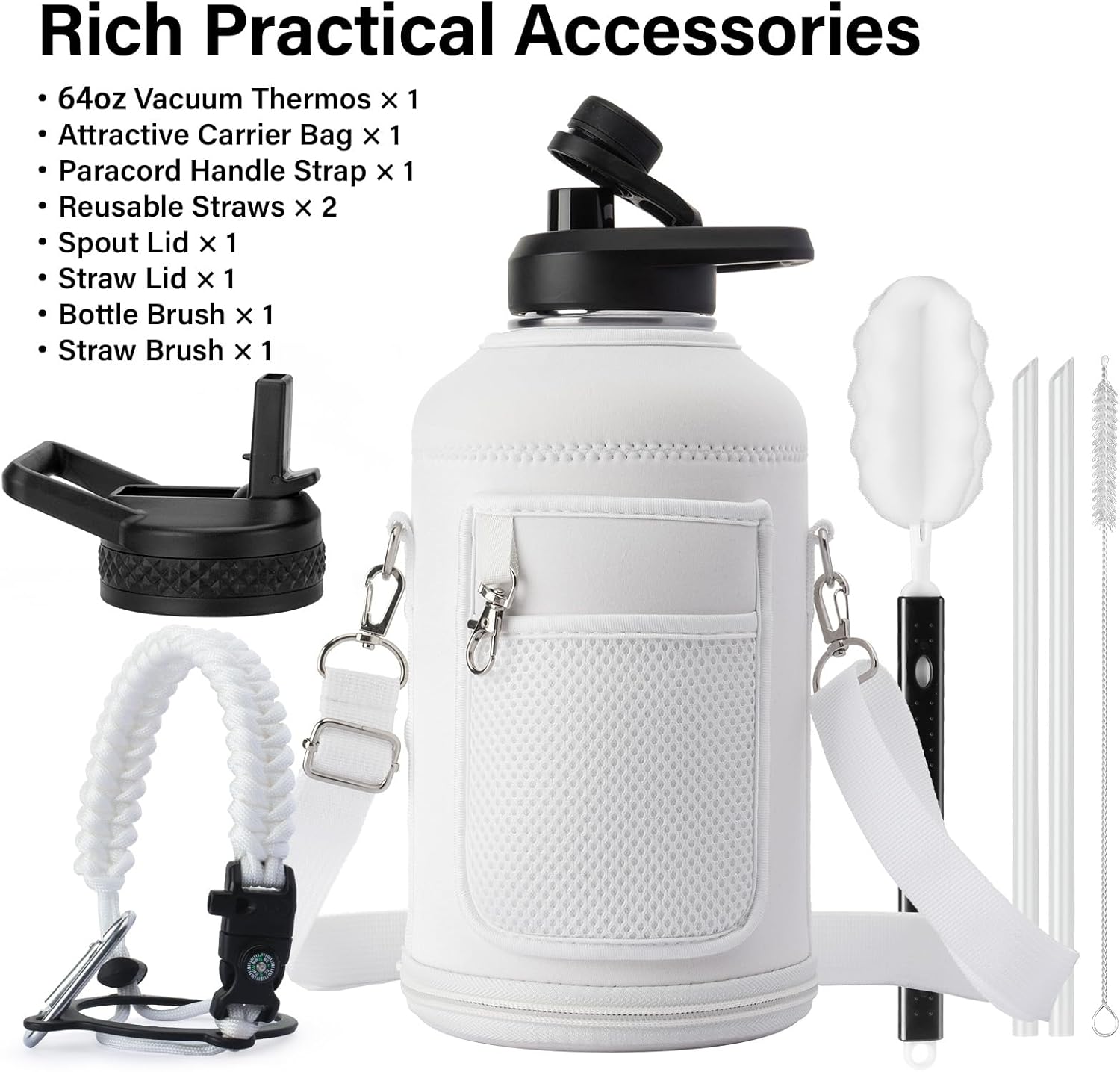 - CONVENIENT ACCESSORIES FOR EASY CLEANING AND USE:Say goodbye to cleaning hassles! This bottle comes with replacement straws, straw brush, and bottle brush to ensure your bottle stays spotless, no matter how often you use it. The wide-mouth design makes it easy to clean, and it’s also perfect for adding ice cubes for a refreshing cold drink. With these thoughtful accessories, keeping your bottle clean and ready for your next adventure is as simple as it gets.