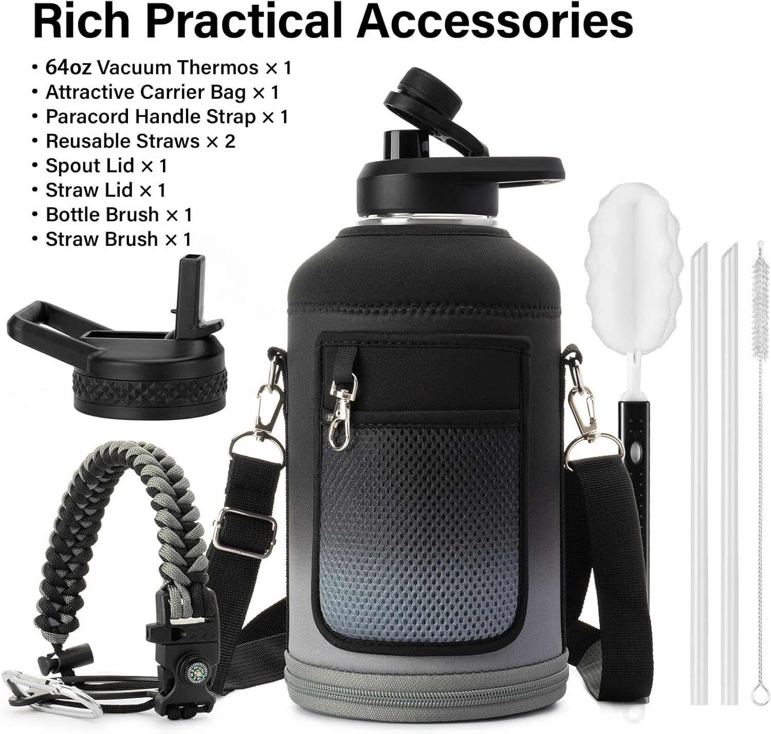 - CONVENIENT ACCESSORIES FOR EASY CLEANING AND USE:Say goodbye to cleaning hassles! This bottle comes with replacement straws, straw brush, and bottle brush to ensure your bottle stays spotless, no matter how often you use it. The wide-mouth design makes it easy to clean, and it’s also perfect for adding ice cubes for a refreshing cold drink. With these thoughtful accessories, keeping your bottle clean and ready for your next adventure is as simple as it gets.