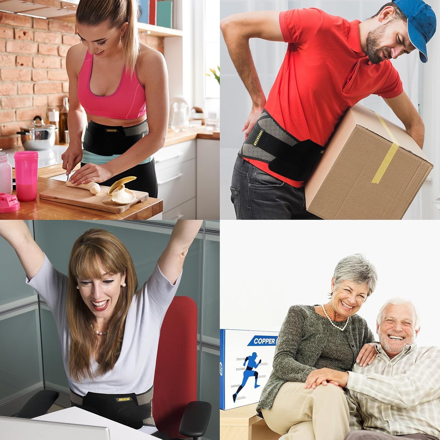 JIUFENTIAN Copper Back Braces for Lower Back Pain with Support System - Lower Back Brace for Herniated Disc,Lumbar supports for Sciatica, Scoliosis,Heavy Lifting and Work(Large)