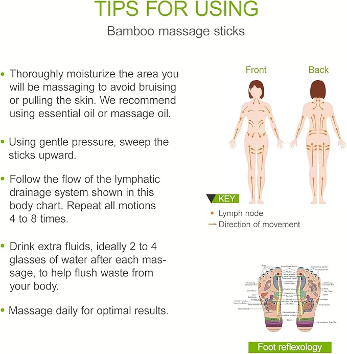 - Easy to Use– RECOMMENDED BY PHYSICAL & MASSAGE THERAPISTS: standing or sitting and reach 95% of muscles by yourself (100% with a partner or professinal!). Lymphatic drainage massager is designed for physical therapy, suitable for targeting specific muscle groups, neck, whole body, provide enough pressure for deep tissue work. Hot bamboo gets rid of knots for myofascial release & trigger point therapy, increase blood circulation, reduces soreness, stiffness & pain, and shape a perfect body .They provide adequate pressure for effective massage. Suitable for self-massage, professional massage or massage with your partner.The massage sticks can be used with massage oil for the best relax.