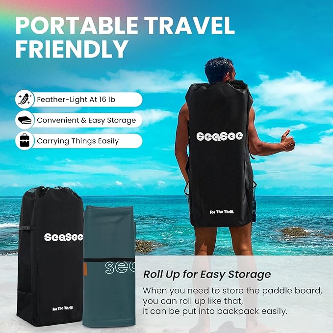 - 【Premium Material Stable Structure】SEASEESUP paddle board is made of polyethylene material, sturdy and durable. The EVA surface has a good anti-slip effect.The board has a stable and wide design, with a maximum load capacity of 330lb,which provides good buoyancy and stability.