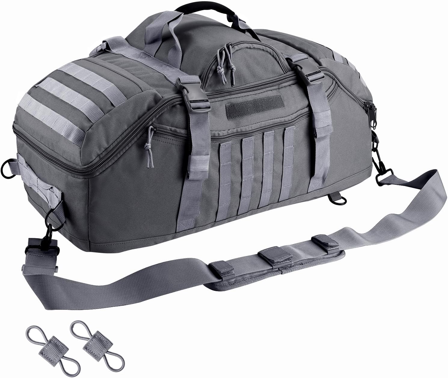 65L Large Duffle Bag, 3-in-1 Tactical Backpack MOLLE Pack for Sports, Gym, Outdoor, Grey