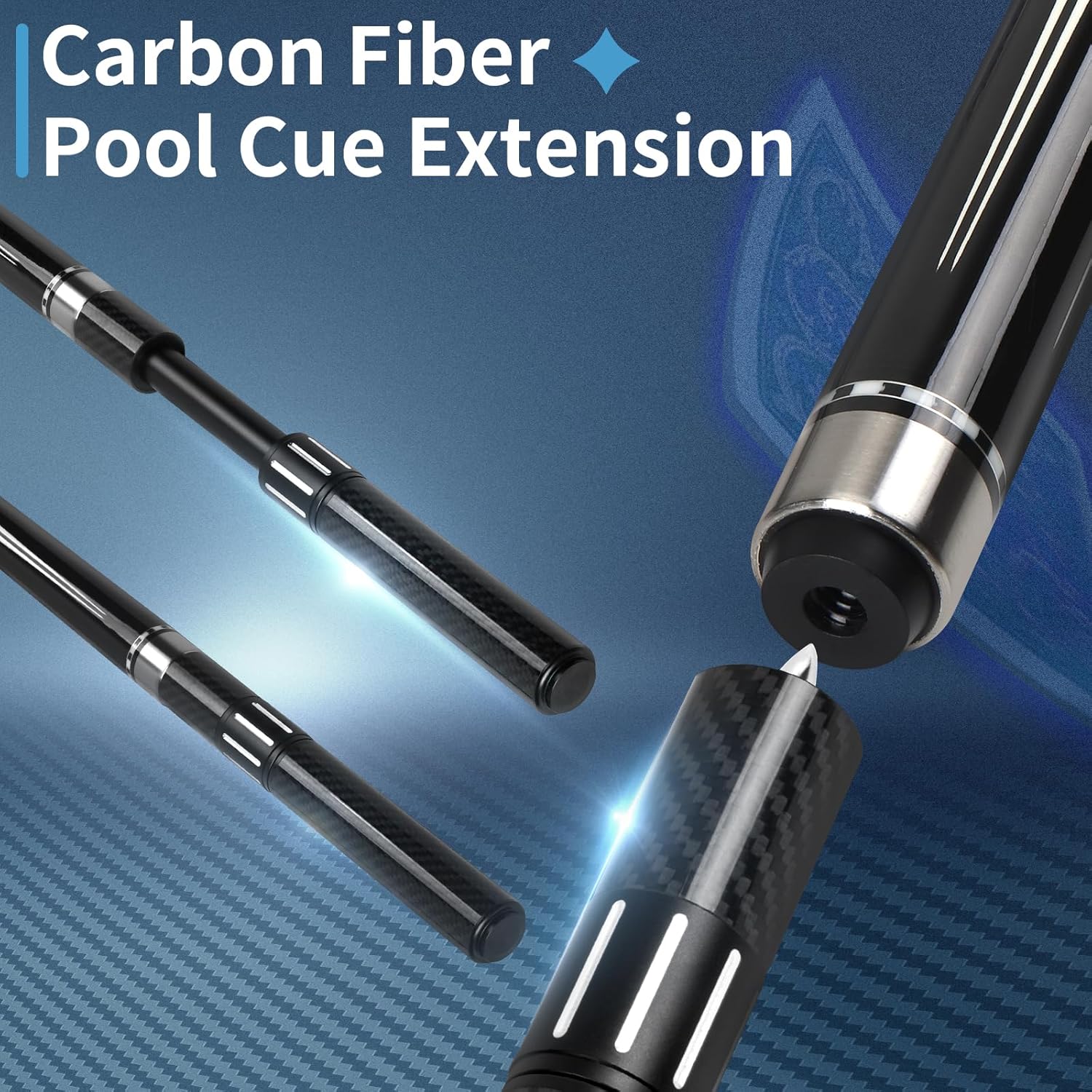 - High-quality Extension Cue: Equipped with a 9-inch carbon fiber pool cue extension cue, which is retractable and adjustable in length. The carbon fiber extension cue adds extra flexibility to your game, allowing you to easily complete long-range shots