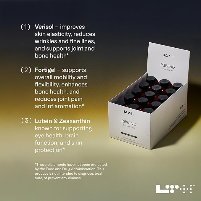 - Antioxidant-Rich Blend: Rewind Collagen Elixir features lutein, zeaxanthin and antioxidants to support an even-toned complexion*