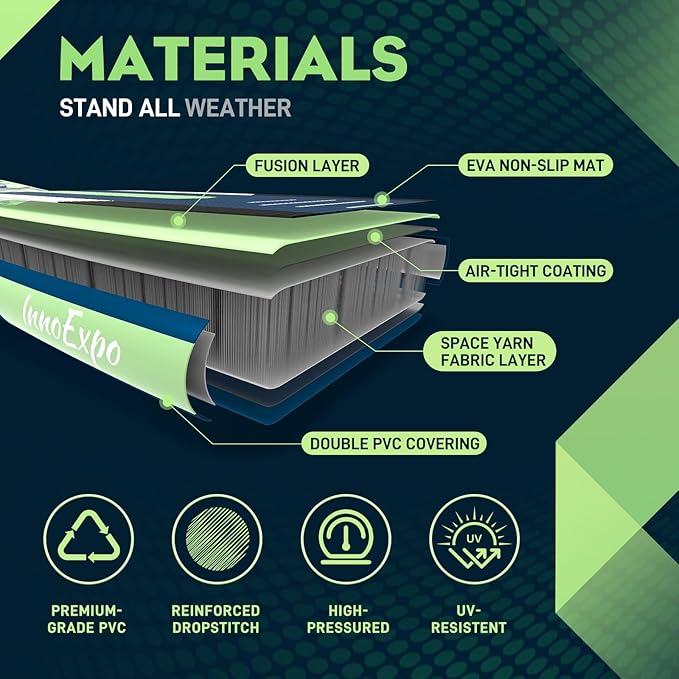 InnoExpo 11' Inflatable Stand Up Paddle Boards with Premium Accessories, Wide Stable SUP Paddle Board Design, Non-Slip Comfort Deck for Youth & Adults