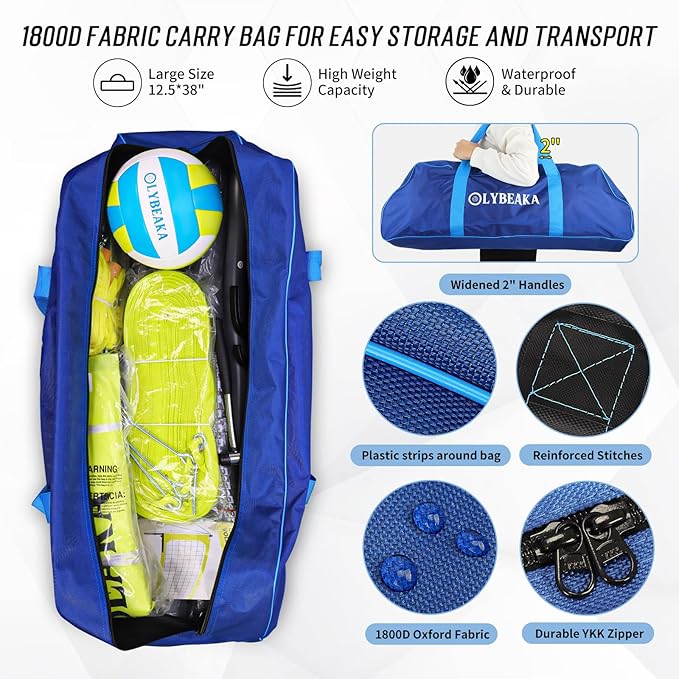 - ๐๐ฅ๐ฅ - ๐๐ง - ๐๐ง๐ ๐๐ซ๐จ - ๐๐ซ๐๐๐ ๐๐๐๐๐ฌ๐ฌ๐จ๐ซ๐ฒ ๐๐๐๐ค๐๐ ๐:This set is your ticket to instant volleyball action. It includes a soft PU volleyball with a large pump (for quick inflation), heavy - duty 12โ long (9mm diameter) stakes + 4 guide ropes, high - visibility 60FT boundary lines & scoring marks, and strong climbing carabiners. The 1800D Oxford carry bag (YKK zipper, widened 2โ handles) fits all components โ even an inflated ball โ for easy storage and transport.