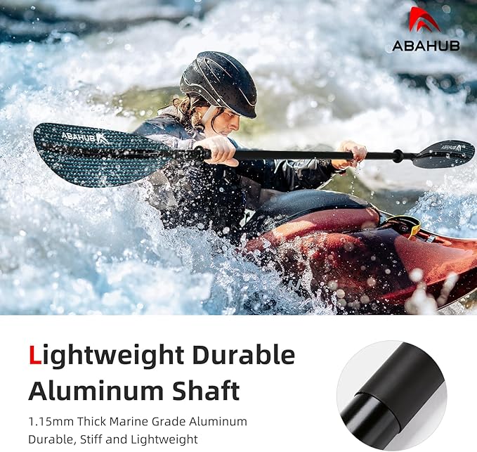 - MADE to LAST: Made of premium quality 1.15mm thick, 29mm diameter aluminum alloy shaft, and fiberglass reinforced polypropylene blades, total weighs 38oz (1075g). This kayak paddle is impact and erosion resistent, thus for great durability. It’s perfect for beginner and intermediate kayakers.