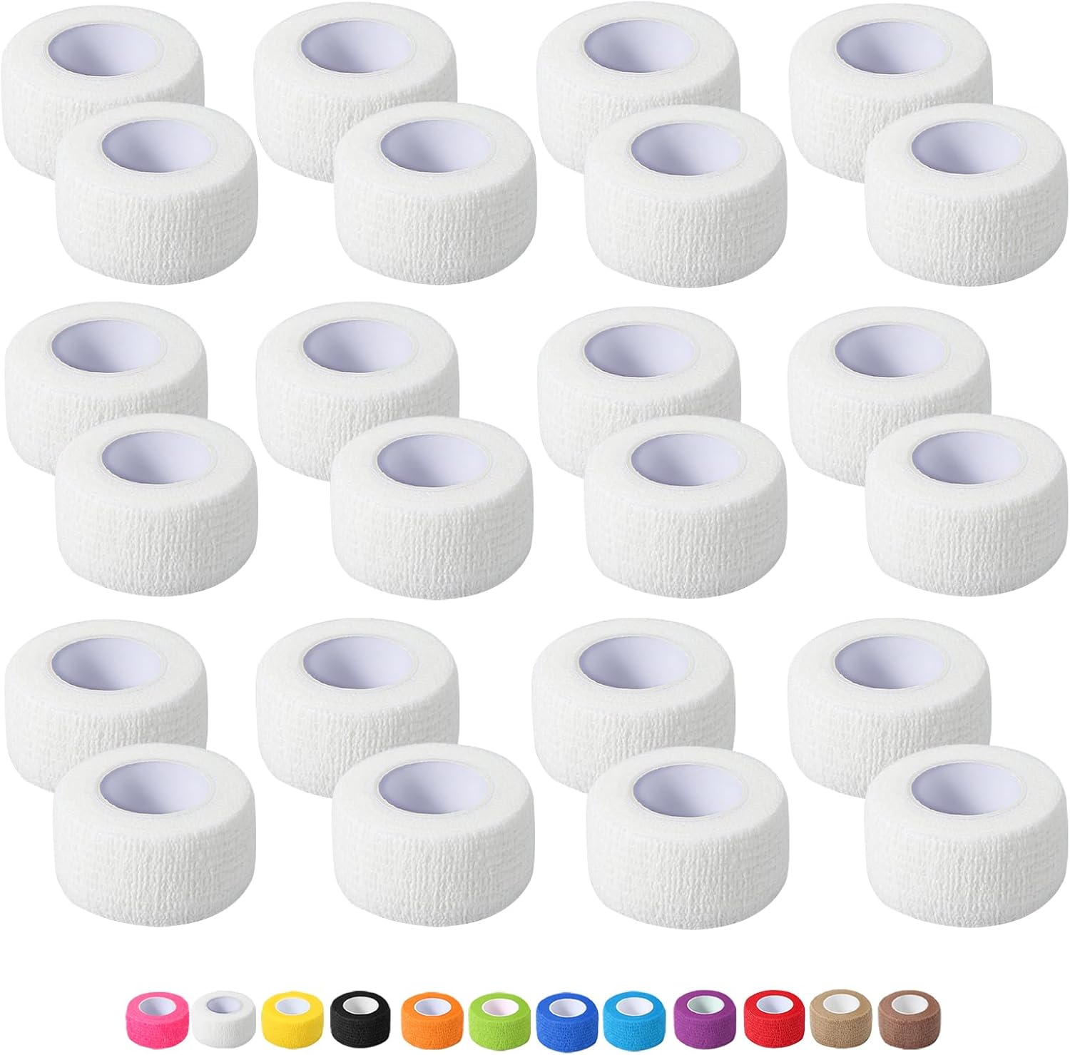 24 Pack Self Adhesive Bandage Wrap, 1 in x 5 Yards Non-Woven Self Adherent Cohesive Bandage, Vet Wrap Wound Tape for Thumb Finger Wrist Knee Ankle, White