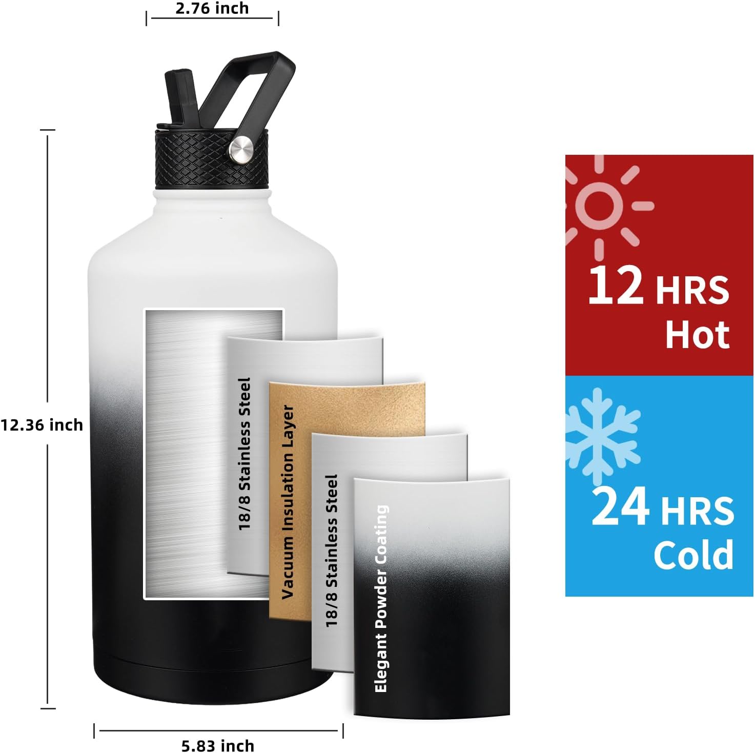 Insulated Water Bottle 64oz,Triple Wall Vacuum Stainless Steel(Dishwasher Safe),Leak Proof & Non-BPA,Flask Jug with Paracord Handle & Straw Spout Lids Sports