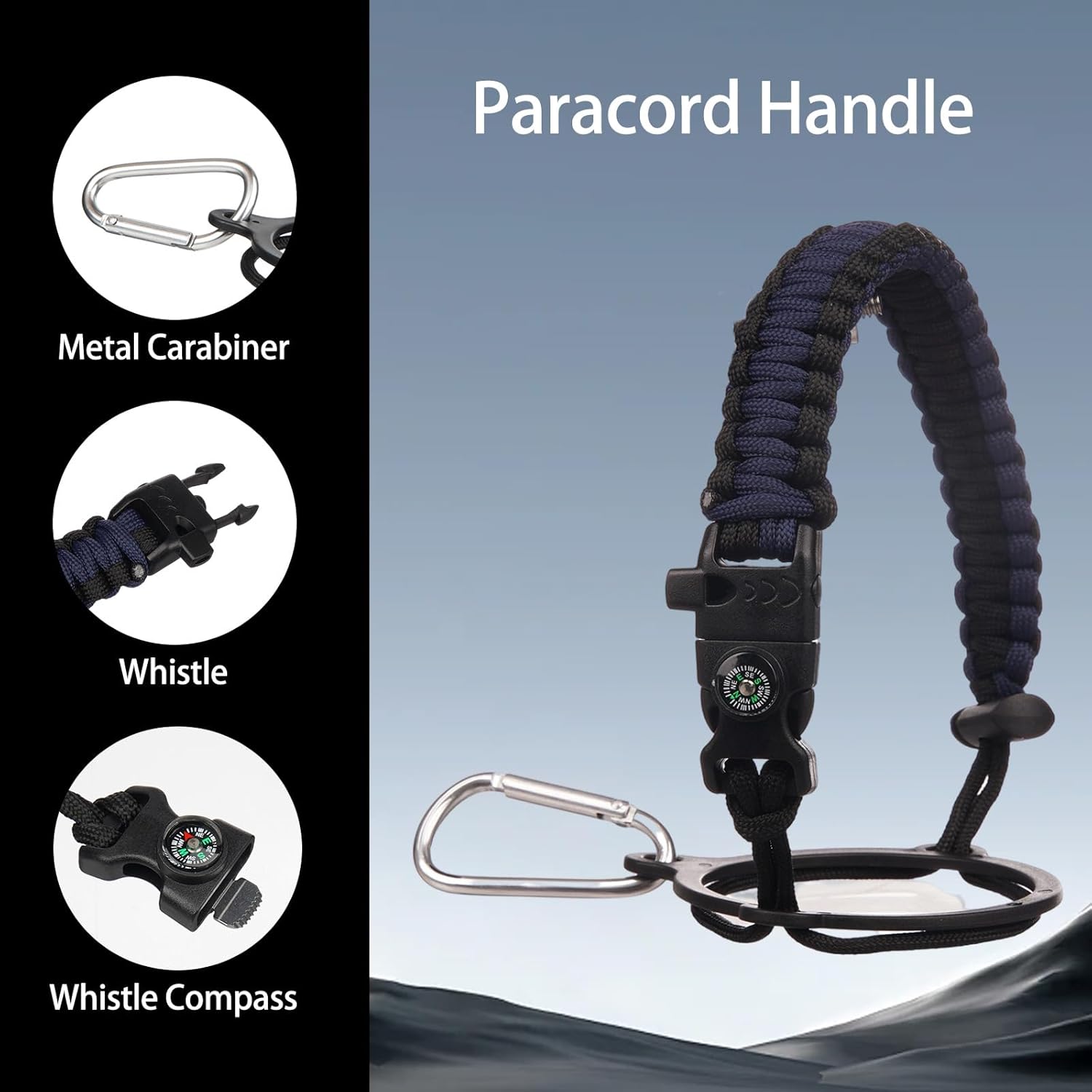 - Suitable for all occasions: This insulated water bottle comes with a beautiful hand-woven nylon paracord, and the paracord handle is equipped with a compass and carabiner and a whistle. It is a fully functional essential water bottle for camping, climbing, hiking, home use, travel, cycling, swimming fitness, and commuting