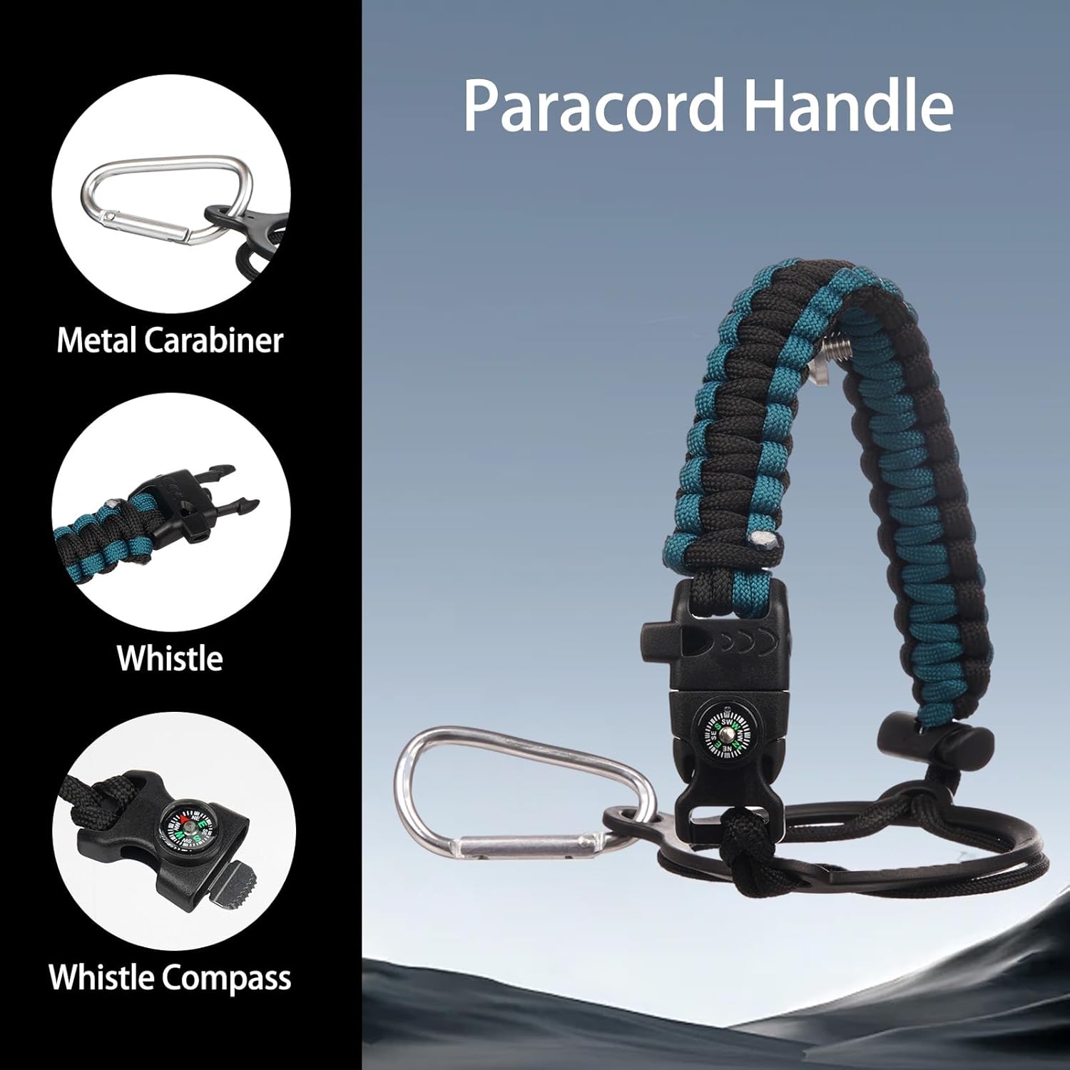 - Suitable for all occasions: This insulated water bottle comes with a beautiful hand-woven nylon paracord, and the paracord handle is equipped with a compass and carabiner and a whistle. It is a fully functional essential water bottle for camping, climbing, hiking, home use, travel, cycling, swimming fitness, and commuting