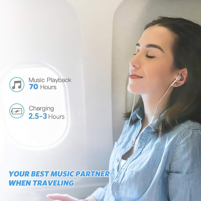 - [70 hours long battery life]: Built-in Lithium ion polymer 420mAh battery. Up to 70 hours playback, fully charged within 2-3 hours by USB charging cable. Enjoy your wonderful musical journey.