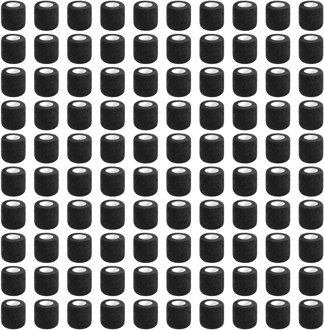 100 Rolls Self Adhesive Bandage Wrap 2 inch Cohesive Bandage Wrap Stretch Bandages Wraps Tape Black Elastic Self-Adherent Tape for Wrist Ankle Sports Swelling Sprains