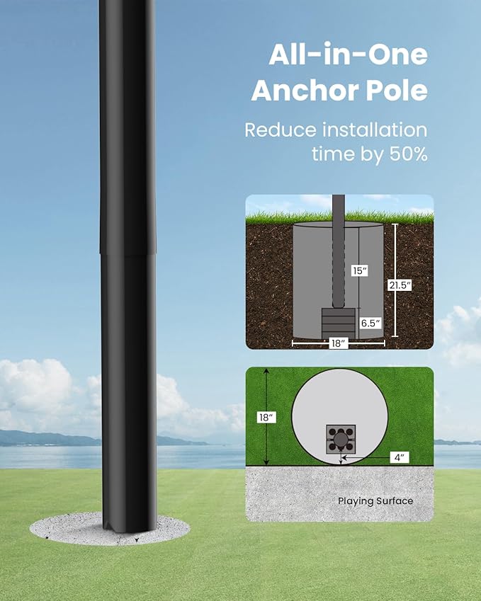 - 52-Inch Shatterproof Backboard: Professional-grade 52" backboard withstands intense outdoor basketball goal use. Ideal for outdoor & home & recreational courts