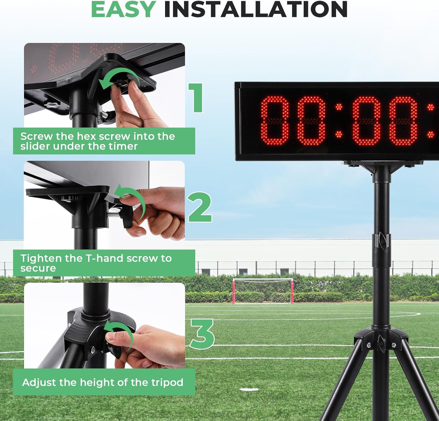 - LARGE OUTDOOR-READABLE SCREEN β Featured with high-brightness LED display, our race timer (2.16"D x 30"W x 7.3"H) ensures clear visibility even under strong sunlight, making it perfect for outdoor events like marathons, running races and other events.