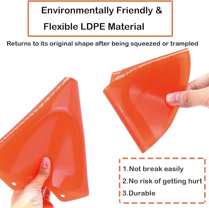 - FLEXIBLE MATERIAL: The cones for sports are made of strong and flexible PP material,all the small cones for sports can retract into their original shapes even if they get trampled on or squeezed