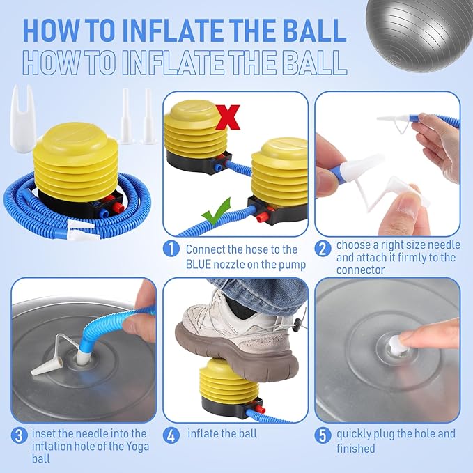 - Various Colors: you will receive 4 pieces of exercise balls for working out, coming in gray, equipped with 1 piece of foot pump, 1 piece of air pull, and 2 pieces of air plugs; The complete set can meet your exercise needs