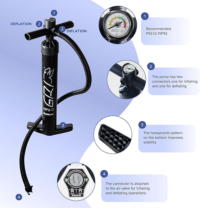 - 【All-in-One SUP Accessories Kit】 Each SKADDLES paddle board comes with a high-efficiency manual air pump, adjustable paddle, ankle safety leash, waterproof phone pouch, repair kit, and removable fins — everything you need for easy setup and worry-free paddling adventures.