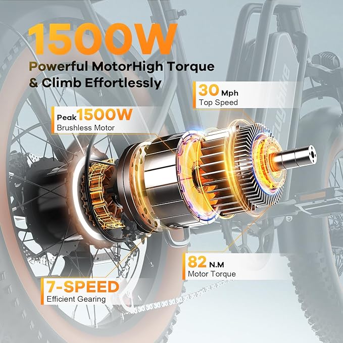 - ๐๐จ๐ฐ๐๐ซ๐๐ฎ๐ฅ ๐๐๐๐ค ๐๐๐๐๐ ๐๐จ๐ญ๐จ๐ซ:This electric bike is powered by 1000W(Peak 1500W) brushless motor, easily reach a top speed of 30 MPH. With strong driving force and climbing hills ability, climbing 30ยฐslopes, can conquer various terrains such as beaches, mountains, snow, city streets.If you like thrills and challenges, you can also ride this mountain Ebike for a non-stop adventure