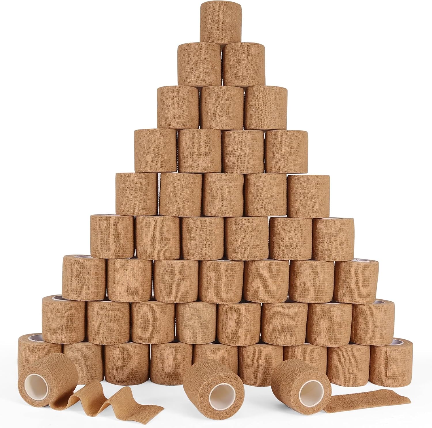 48 Pack Self Adhesive Bandage Wrap, 2” x 5 Yards Cohesive Medical Tape Elastic Grip Tape Black Sports Tape Athletic for Ankle, Wrist Sprains, Pet First Aid (Brown)