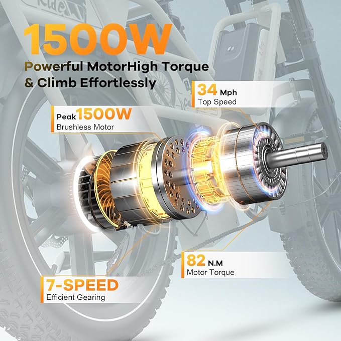 - ๐๐จ๐ฐ๐๐ซ๐๐ฎ๐ฅ ๐๐๐๐ค ๐๐๐๐๐ ๐๐จ๐ญ๐จ๐ซ:This electric bike is powered by 1000W(Peak 1500W) brushless motor, easily reach a top speed of 34 MPH. With strong driving force and climbing hills ability, climbing 30ยฐslopes, can conquer various terrains such as beaches, mountains, snow, city streets.If you like thrills and challenges, you can also ride this mountain Ebike for a non-stop adventure